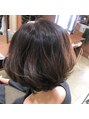 前下がりボブのボリュームアップ(^ ^)ハイライトを入れて動きが出るようにしています!カットラインを丁寧に作らないとボリュームはでません!是非お任せください!