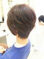 襟足をスッキリさせて、メリハリをつける為にトップを短くして高めのグラデーションにカット。やわらかさを出す為に、8レベルのマットブラウンでカラーしました。