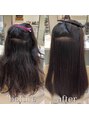 髪の毛のうねり、クセ、広がり、まとまらない、、そんなお悩みをお客様からよくご相談されます。またハイダメージ毛やブリーチ毛でも髪質改善によりお客様史上最高の【艶髪】に致します。