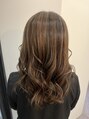 細かく全体にハイライトを入れることで、巻いた時に自然な立体感と透明感が生まれます。白髪ぼかしにもおすすめな上品デザイン。赤みを抑えたグレージュで、お肌のトーンもパッと明るく見せてくれます。