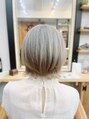 ダブルカラーはお任せください!このカラーは1度ブリーチで脱色します♪更に追いブリーチでとことん抜きます♪その上からグレー、ラベンダー、アイボリーをmixしたカラーをON☆そうするとホワイトシルバーに^ ^