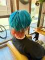 派手髪が得意な八王子美容室トルチェです!今回はマッシュウルフのインナーカラーをご紹介です♪ターコイズカラーをベースにインナーはビビットオレンジに!!お互いの色を引き立てあってくれる組み合わせで遠くからでも目を惹く派手髪に!!