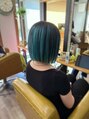 切りっぱなしボブ アクアブルー ブラック アンブレラカラー