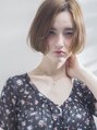 Chelo by release。透明感と色の深みをマッチさせたスタイリッシュなベージュカラー♪顔まわりにかかる感じが女性らしさと色気をプラスしたちょっぴりエレガントなミニマムボブ♪ボーイッシュになりやすいショートに女性らしさをプラスした大人ボブ♪