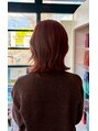 レイヤーウルフミディアム×オレンジブラウン/外ハネくびれUP