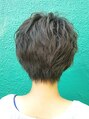 トップが短かく無造作カールでコンパクトショートに☆バックは2セクションで切りこんで厚みを取りました。耳にかけてもまた違ったイメージに。ひし形にセットすると更に小顔に見せられます。