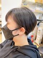 【気に入って頂いたスタイルは、ブックマークをしてご提示ください】baseをブラントカットでシルエットを作り、質感調整で柔らかさを出しました。丸いひし形シルエットはショートの王道です、いつの時代も人気なコンパクトショートはカットが全てです!!
