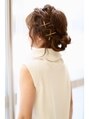 夏らしさ、女の子らしさが全開のアップスタイル!サイドに付けたお花の金ピンと顔周りのゆるい毛束がアクセントになった、お洒落感度抜群のアレンジです。【前橋】
