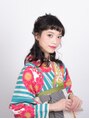 可愛い波ウェーブのハーフアップスタイル。クロス編みでまとめた立体的なアップが美しく、大正ロマンのハイカラな雰囲気を現代に蘇らせてくれます。