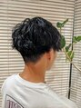 暑い夏にぴったりの軽やかフェザーパーマとクールなブルーブラックカラーで、爽やかさと清潔感を両立。ツーブロックでさらに涼しげに、好印象間違いなしのスタイルです。ビジネスシーンにもカジュアルにも◎
