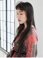 腰のあたりまであるSUPERロングに眉上バングがモードな印象。さらにバングをカールさせ、個性的に。ダウン部分には緩やかなウェーブをプラスしました。