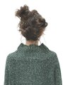 大きさの違う3つのお団子をラフに崩した、定番お団子スタイルの上級アレンジ。お団子の位置と大きさで顔型カバー効果も。今回はモデルさんの丸い顔型をカバーするために高さを出してバランス◎。