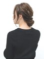 トップはロープ編込、サイドは毛束をひねり後ろでまとめたら毛先をさらにロープ編みして丸め込み、ピンで留めます。面を意識して編み込む事で、カジュアルなだけではない程よい上品さがプラス。