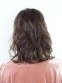 ”うざバング”と、全体のゆるやかなウェーブが、やわらかい外国人風の髪質を表現。トップはふんわりさせつつ、毛先に向かってウェーブでAラインを作ります。よりきれいにウェーブが出るように、表面に軽く入れたレイヤーがポイントです。