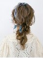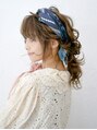 細やかなカールを重ね、スカーフに絡ませながら仕上げた華やかアレンジ。360度どこから見ても可愛いこなれ感たっぷりのヘアです。お出かけの日の特別なアレンジは、ぜひスタイリストにご相談ください♪