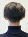 トップを長めに残したナチュラルなセンターパートマッシュに、サイド~バックをツーブロックに刈り上げたハンサムショート。トップは自然な毛流れに沿うようにして全体的に緩くコテで動きをつけ、こなれ感を演出しています。