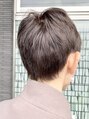 骨格補正カットで頭の形が360°どこから見てもきれいに見えるミニマムショート♪透明感のあるダメージレスなイルミナカラーで赤味やオレンジを消したグレージュカラーに☆