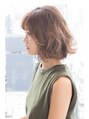 ゆる~くふわっとパーマをかけたボブのスタイルです。カラーは透明感のあるネイビーベージュ。ボブでもパーマをかけて動きのあるスタイルになりますよ!!