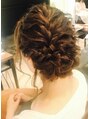 編み込みとねじねじをミックスした可愛らしいアレンジです。結婚式から二次会、ちょっとしたパーティーやお出かけのシーンにも似合う華やかなアレンジです。