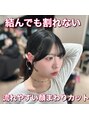結んだ時でも前髪が割れにくいようにバランスを調整した顔まわりカット。流れやすい毛流れを作ることで、耳掛けやポニーテールでも可愛いシルエットに。簡単にスタイリングできて小顔効果も◎