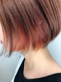 長さは、短めのボブ。さり気なく可愛く出るようなインナーカラーを入れてます。インナーにブリーチを入れ、上からオレンジの薬剤をかぶせてます。