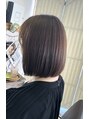 肩に当たるか当たらないかぐらいのラインでカット。中を毛量調整してあるので、内巻きやハネさせたり自由にスタイリング出来ます。重めのラインですが光を感じるオークルベージュで軽やかさを出してあります。スプリングさんの肌にも映える色味で顔映り良く!