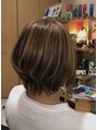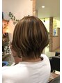 毛流れを意識して多面的にハイライトを入れてあります。そこに奥行きを出す為、ローライトをプラスした3色の立体感カラーです。そのままでも重さを感じませんが、風が吹く、かきあげ頭を動かす度に、更に軽やな躍動感を感じる事が出来ます。