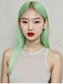 ミントグリーン ワンレンロング