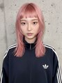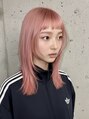 ハイトーンピンクに染めたハッシュカット。アウトラインは揃えてカットし、顔まわりにはライトなレイヤー、前髪はショートで広めに。ブリーチは2~3回必要です。