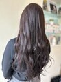 初めてカラーしたお客様です。透明感や抜け感を出すためにラベンダー系のカラーにしました。明るさは9レベルくらいです。コテで巻いて柔らかい雰囲気に仕上げました。