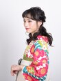 可愛い波ウェーブのハーフアップスタイル。クロス編みでまとめた立体的なアップが美しく、大正ロマンのハイカラな雰囲気を現代に蘇らせてくれます。【EARTH北小金】