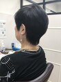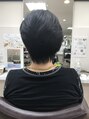 左側の髪のクセが強いので、クセがでない短さまでカット、右側は、長さを残し女性らしさをキープしました。