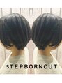 ステップボーンカットカットボブショートハイライト白髪ぼかし