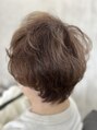 トップのボリュームを際立たせる為に耳したからネープにかけての髪の毛をタイトに仕上げます。エイジングケアカラーで明るい白髪染めでも頭皮や髪の毛のコンディションは上がりました。