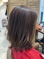 明るめグレージュ立体感透明感_ワンレンボブくびれ外ハネカール