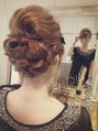 カチューシャを使ったルーズなシニヨン・りぼん・編みこみスタイルをミックスした大人かわいいパーティーセットスタイル☆結婚式・二次会・イベント・パーティなど色々アレンジが楽しめます♪