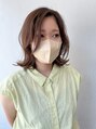 顔まわりとトップにレイヤーを入れて動きのあるミディアムハイライトをランダムに入れて透明感のあるモカベージュでオンカラー赤みが抑えられるカラーです毛先は外ハネ、トップは波巻きにしてMOIIバームを揉み込むようにつけてなじませています