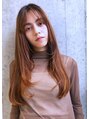 毛先のブラント感を長さがロングヘアーだからこそ、毛先の柔らかさをレイヤーでの動きに任せ動きにもかけないようにカラーでのヌーディなまろやかベージュで大人のヘルシーなツヤ感を。前髪も重たく見えないように分け目も気にならないよう自然体に仕上げ。