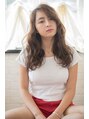 大人可愛い外国人風なミディアムスタイル。無造作なウェーブがポイント。夏はレイヤーを入れて動きを出してあげます。カラーは明るめベージュで透明感アップです。