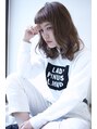 cカールバング/ショートバング/オンザ眉毛鎖骨下5センチのレイヤーミディアム。トップは顎ラインのレイヤーを入れ、前髪はアシンメトリーで抜け感を。パーマはリバースカールを多用し、ラフな印象に。カラーはペールバイオレット。