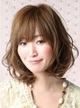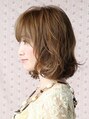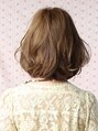 ふんわり根元から立ち上がるボリューム感と頬からうねるようなカール感が女性らしいやわらかい曲線を演出しています。カラーリングはやや明るめのモカベージュをオン。ボリュームアップしたい女性の方にオススメのヘアスタイルです!!