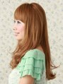 重さを残した毛先にパーマをプラスしたスタイル。リップラインからボリュームを出してサイドに広がるシルエットを作り面長をカモフラージュ、華やかさもプラスします。明るめのカラーリングでボリュームがありながらも、ふわっと軽いスタイルに見せてくれます