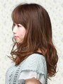 空気をたっぷりはらんだようなフワフワのカールが甘い雰囲気のロングスタイル。丸く曲線を描く前髪でキュートな印象をさらにアップします。ベージュ系のカラーリングで落ち着いた上品な仕上がりに。甘い印象を持ちつつ幼くなりすぎない大人可愛いスタイルに