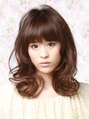 甘さの中にも品の良さが漂うセミロングスタイル。ふんわり空気をはらんだ曲線シルエットが女性らしさを際立たせます。目元ギリギリの重めの前髪は視線を集め目力をアップさせる効果が。落ち着いたカラーリングでツヤ感と透明感を与え大人なスイートスタイルに