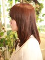 流れるような質感が上品なストレートヘア。顔周りにレイヤーを入れることにより軽やかさを演出。髪の広がりが気になる人は毛先にパーマをかけることにより、スタイリングも楽な、まとまりのあるヘアに。ピンク系のカラーリングで艶感をプラスします