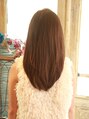 流れるような質感が上品なストレートヘア。顔周りにレイヤーを入れることにより軽やかさを演出。髪の広がりが気になる人は毛先にパーマをかけることにより、スタイリングも楽な、まとまりのあるヘアに。落ち着いたカラーリングで上品な艶感をプラスします