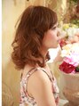 大人かわいい、スウィートなミディアムボブスタイル。毛先のワンカールがフリルのように動く、どんなシーンにもマッチするスタイルです。パーマが生きるように明るめのゴールドベージュでカラーリング。艶っぽさがなくならない、ふんわりカラーです。