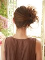 硬くなり過ぎない柔らかさを出したアップスタイル。トップからサイドにかけてのゆるカールで女性らしさを引き立てます。どんな顔型にも似合うアップスタイルです。