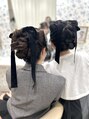 - お揃いヘア/親子ヘア/高めシニヨン/猫耳ヘア