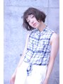 リップラインのボブベースで、バングも眉上で全体的にスッキリした印象に!パーマも中間~毛先にランダムな動きが出るよう巻く。カラーも控えめなダークアッシュで。